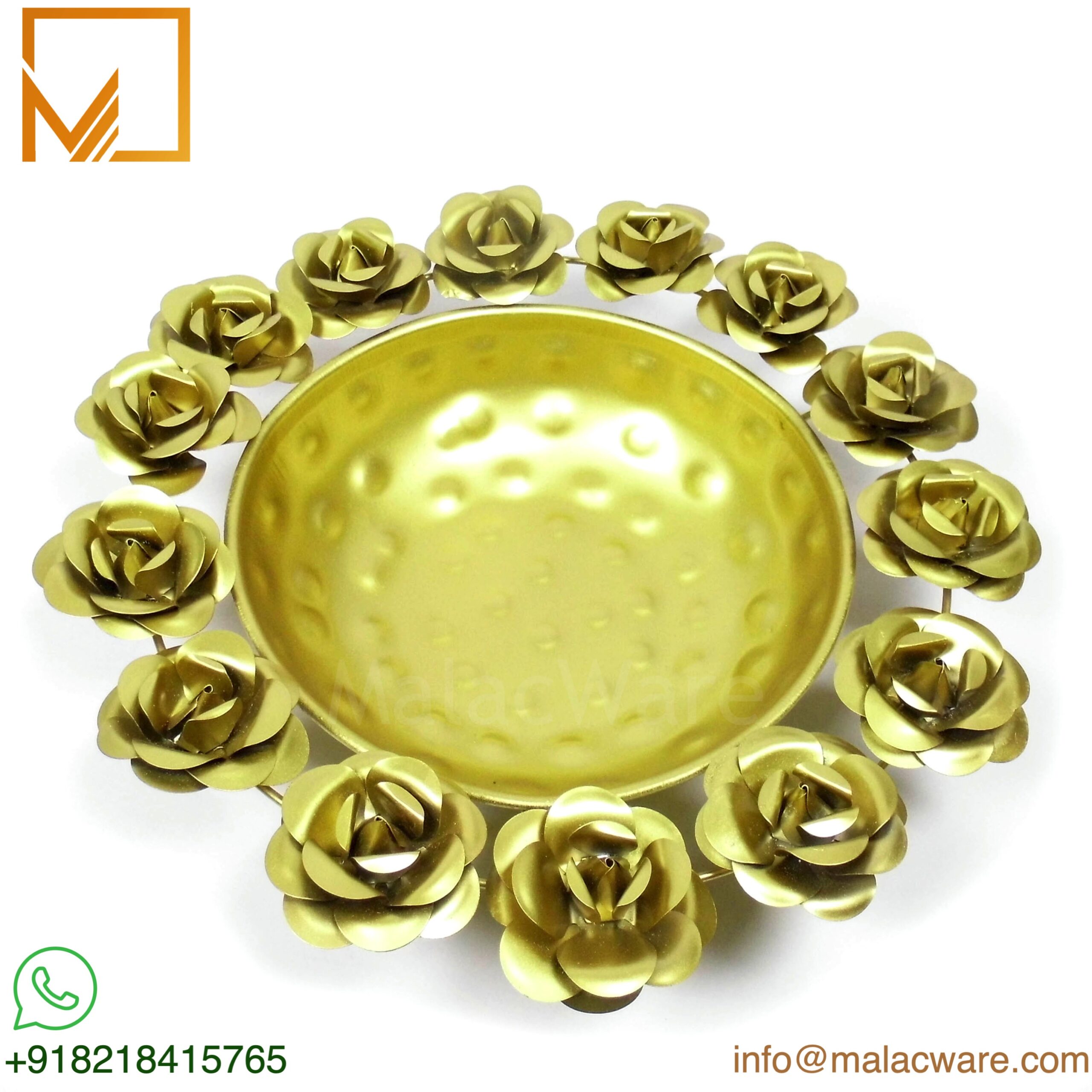 Golden Rose Flower Metal Urli Bowl | Decorative Centerpiece for Events & Décor