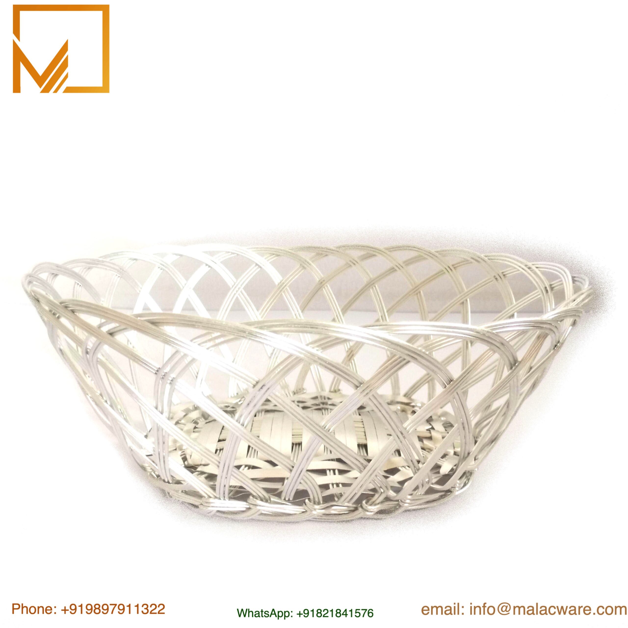Manufactured from premium-quality aluminum, the basket is expertly hand woven by skilled artisans, ensuring durability, uniform structure, and long-lasting use. Its rectangular-oval form with generous depth makes it ideal for serving bread, fruits, snacks, or for arranging gift hampers and tabletop essentials. The silver finish gives the basket a sleek, elegant appearance, making it a preferred choice for minimalist, luxury, and modern décor themes.