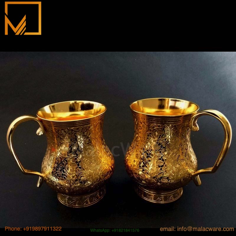 Whether used to serve beverages or displayed as a decorative accent, these mugs exude elegance and tradition. Their durable brass construction ensures long-lasting shine and easy maintenance, while the handcrafted finish makes each piece unique.