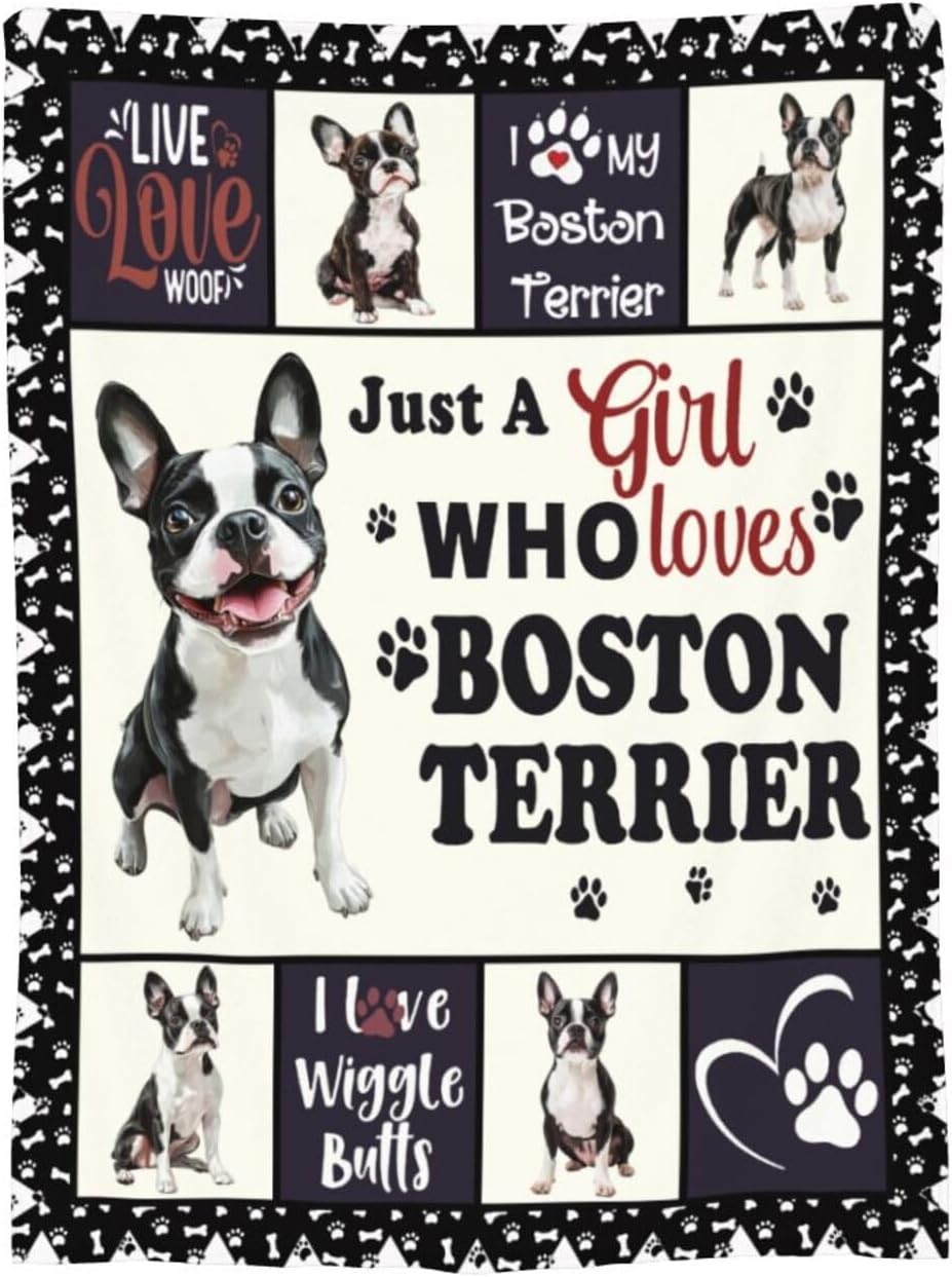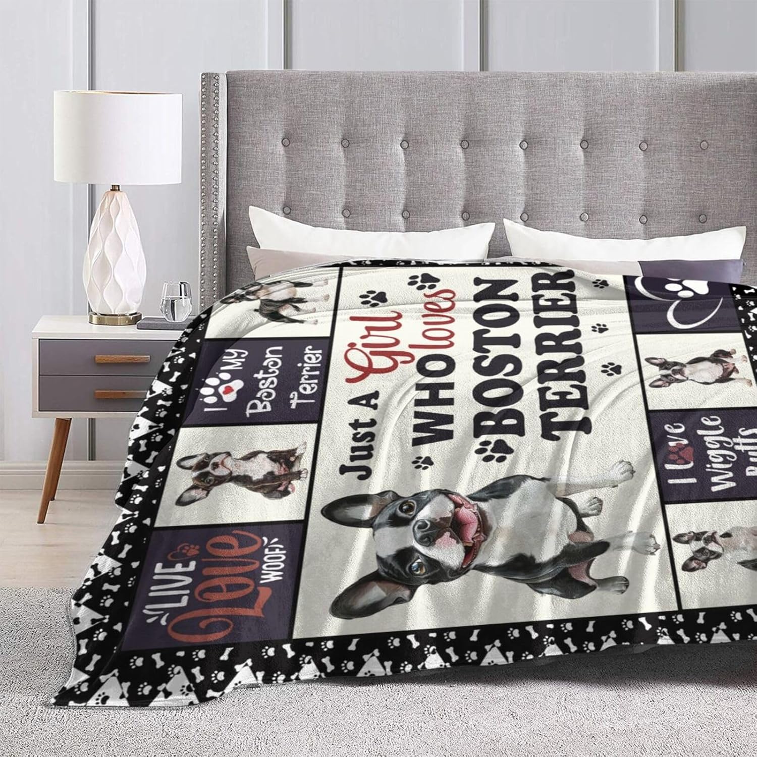 Boston Terrier Blanket Dog Throw Blanket Just A Girl Who Loves Boston Terrier Soft Cozy Warm Fuzzy Fleece Lightweight Plush Merch Decor Gifts for Lover Woman Boy Girls Couch Bedding Sofa 80"X60"