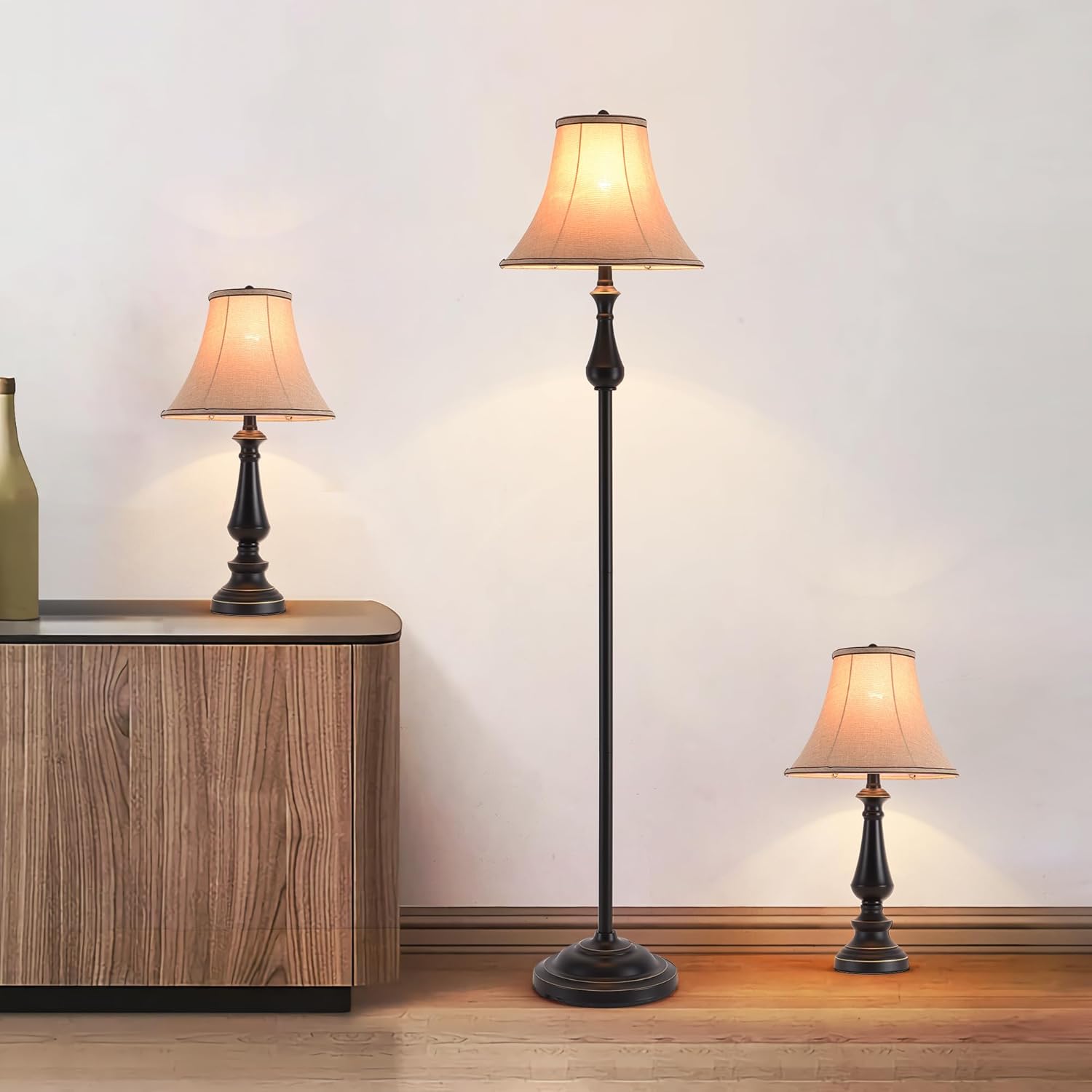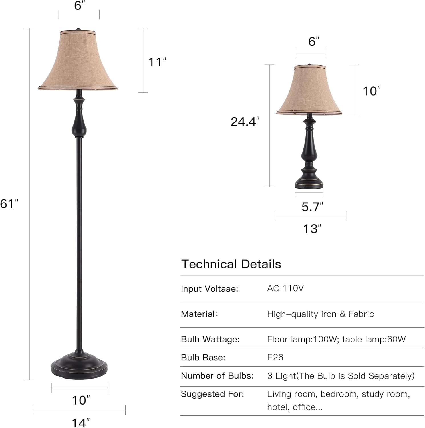 Smeike lamp set features a classic art-decoinspired look with a contemporary twist, exuding elegance with a shimmeringretro brown finish. Clean designadds a touch of elegance to any room. Perfect for your living room, bedroom. Feature: High-quality Material Retro Elegance Style Perfect for Bedroom, Living Room,Study Room Brown Fabric Shade Soften the Light Extra Heavy Base for Stability Easy to Installation Bring a Warm and Inviting Light Specification: Style: Retro Elegance Material: Iron & Fabric Number of Bulbs: 1 Bulb Included: No Voltage: 110V Bulb Type: Floor Lamp: Incandescent 100W/LED 10W; Table Lamp: Incandescent 60W/LED 7W Bulb Base: E26 Power Source: Hardwired Base Diameter: Floor Lamp:10" Table Lamp:5.7" Dimension: Floor Lamp Height: 61 inches Table Lamp Height: 24.4 inches Floor Lamp Max Width: 14 inches Table Lamp Max Width: 13 inches Floor Lamp Base Diameter: φ10 inches Table Lamp Base Diameter: φ5.7 inches Timely after-sales service: We hope that you are completely satisfied with the goodspurchased from our store. If you have any questions, please contact us directly andwe will solve the problem as soon as possible. How to ask questions: Log in to your account Check the order ID Click "Contact Seller" to ask questions.